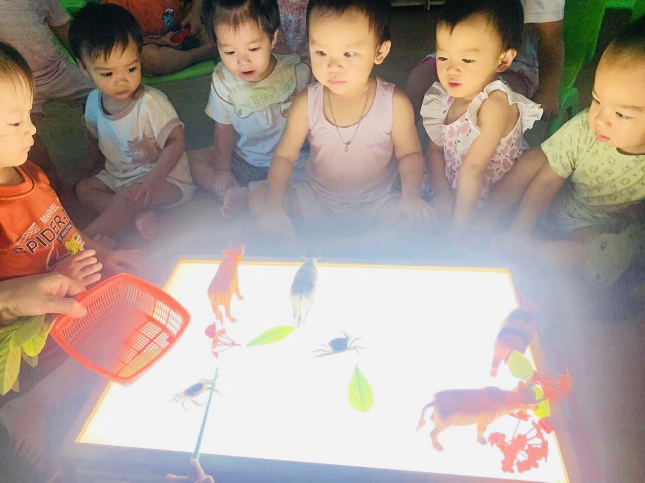 Bé hoạt động với bàn chiếu ánh sáng