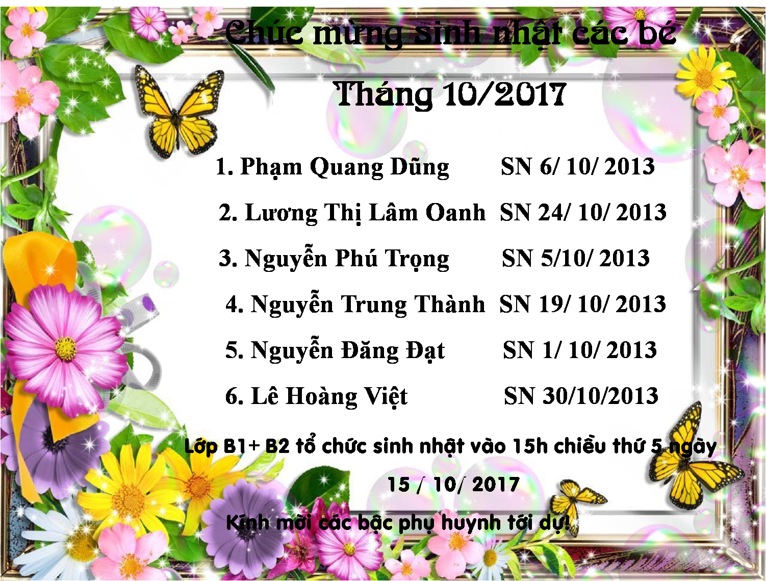 Chúc mừng sinh nhật các bé khối MGN tháng 10 năm 2017