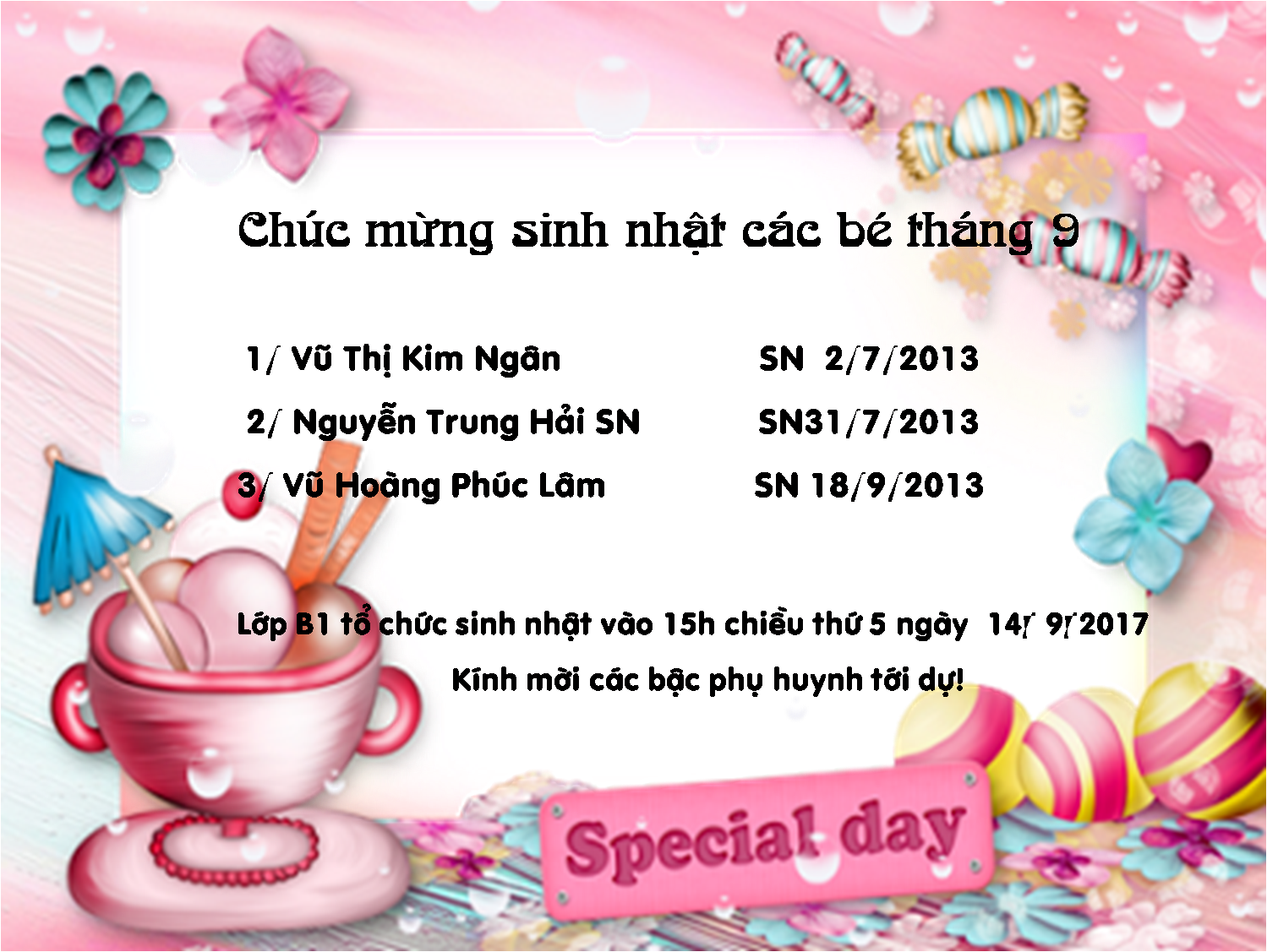 Chúc mừng sinh nhật các bé khối MGN tháng 9 năm 2017