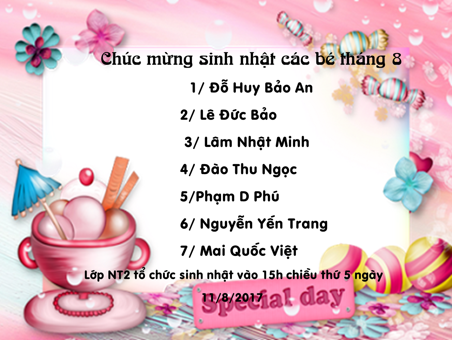 Chúc mừng sinh nhật các bé khối MGN tháng 8 năm 2017
