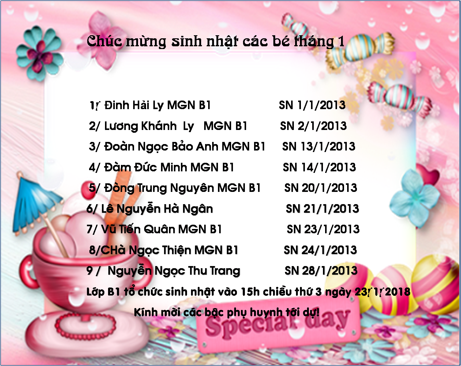 Chúc mừng sinh nhật các con khối MGN tháng 1 năm 2018