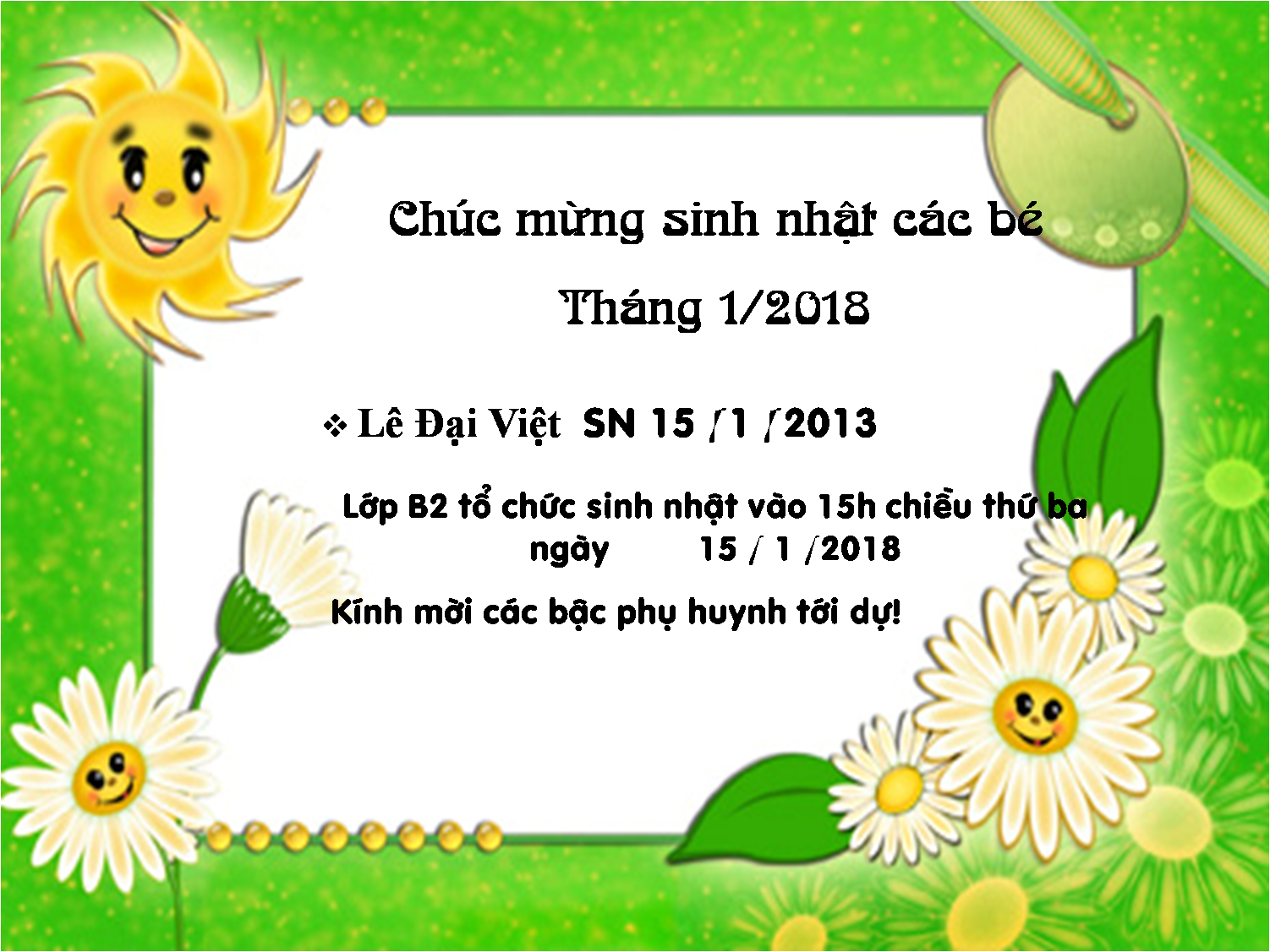 Chúc mừng sinh nhật các bé khối MGN tháng 12năm 2017