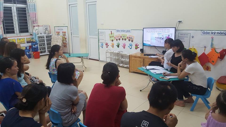Tại cuộc họp, các bậc phụ huynh đã được nghe cô giáo trình bày kế hoạch tổ chức các hoạt động chăm sóc giáo dục trẻ của nhà trường cũng như của nhóm lớp trong năm học 2017 – 2018, các nội quy của nhà trường. Đặc biệt, các cô giáo cũng đã báo cáo tới phụ huynh các chương trình hành động cụ thể trong lộ trình xây dựng trường chất lượng cao, giai đoạn 2017 – 2018.