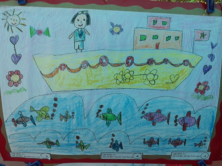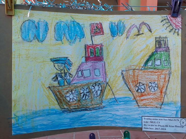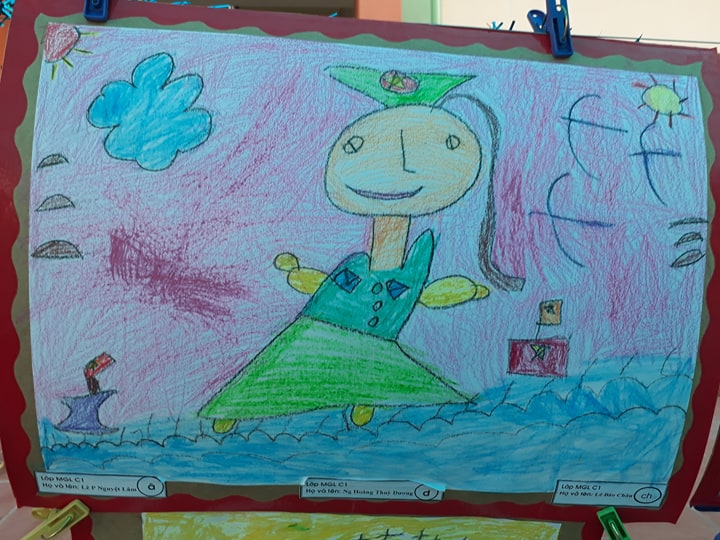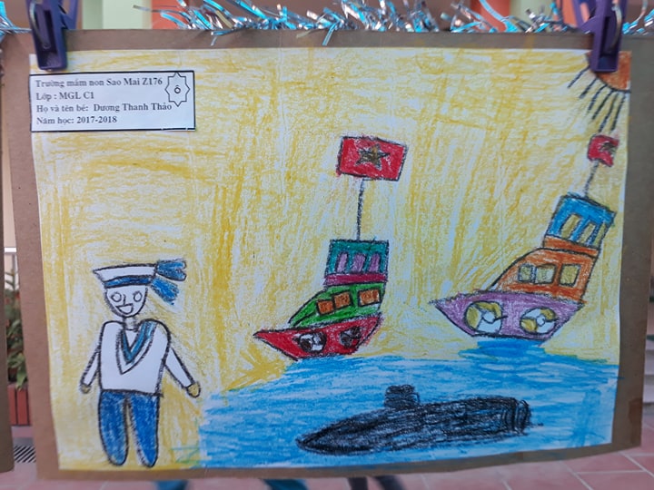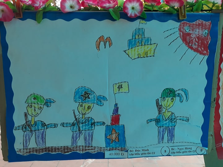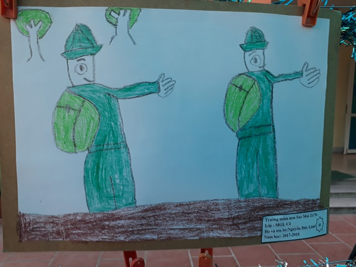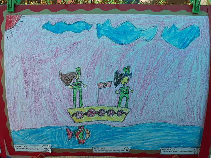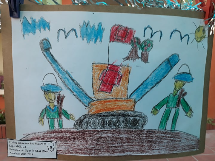 Tác phẩm "Mùa Xuân và chú Bộ đội" Họa sỹ nhí Lương Bảo An..